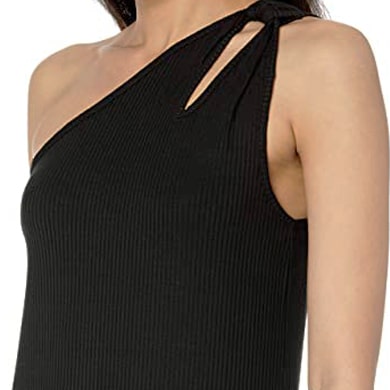 • A subtle twist cutout adds a touch of romance to this minimal one-shoulder flowy maxi dress silhouette, cut from a lightweight Tencel blend ribbed knit. Belt the waist for added shape and a pop of color